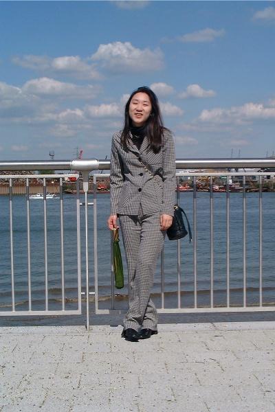 Young Jin in Greenwich, Millennium Dome in front of the River Thames.